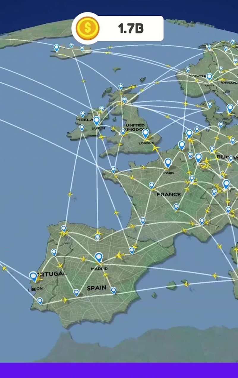3、玩家可以在游戏中解锁新的国度,同样连接所有的城市,形成空中交通网。