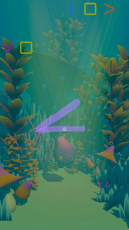 1、开局一个教学关,观察鱼群带来的符号,快速在屏幕上滑动手指;