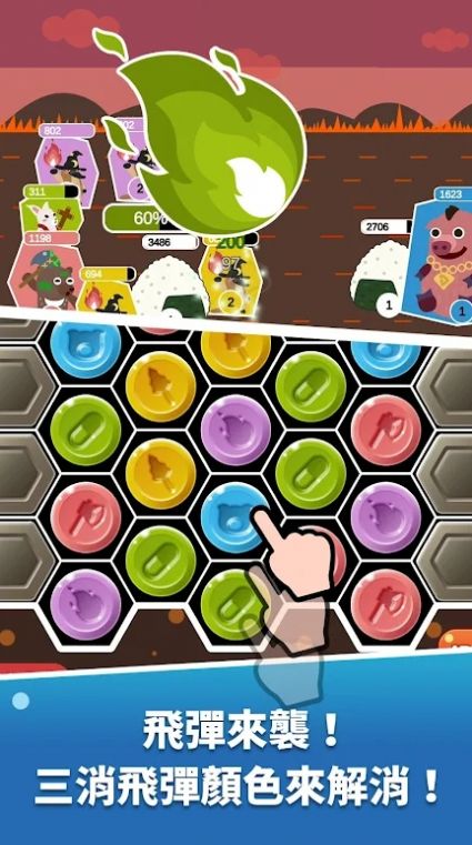 2、制作团队为你打造不一样的趣味消除互动闯关体验,带上你的饭团一起参与更多的决斗体验。