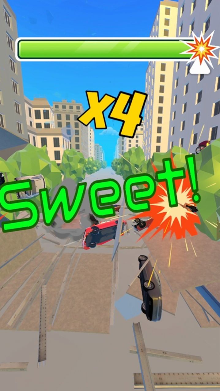 2、开始去发射那些汽车,你可以将汽车扔到城市中,摧毁那些建筑。