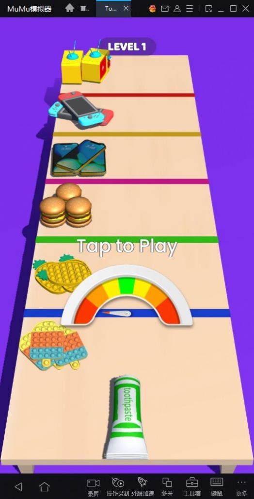 1、这是一款具有挑战性的游戏,使用道具挤压牙膏,让牙膏喷出来。