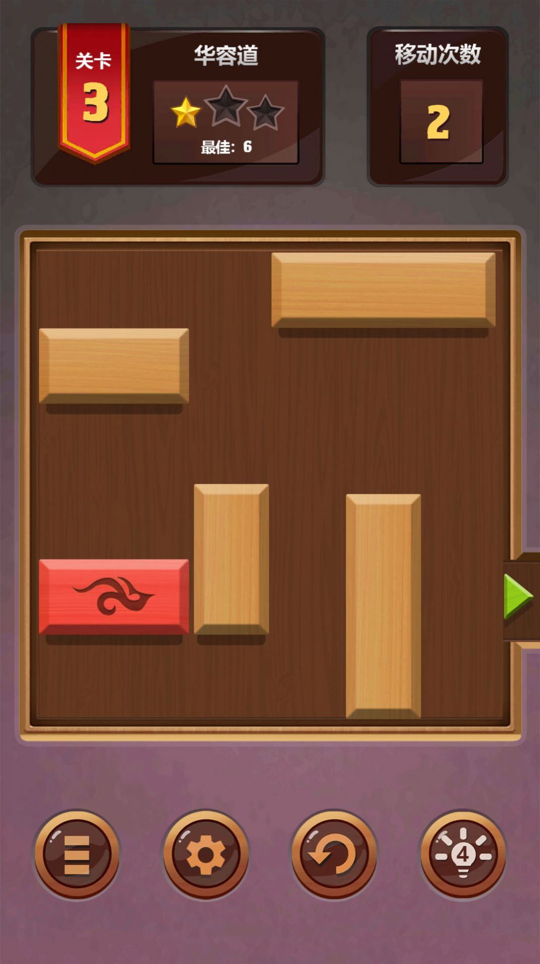 1、华容道模式:通过移动障碍木块帮助被困住的红色木块找到出口。