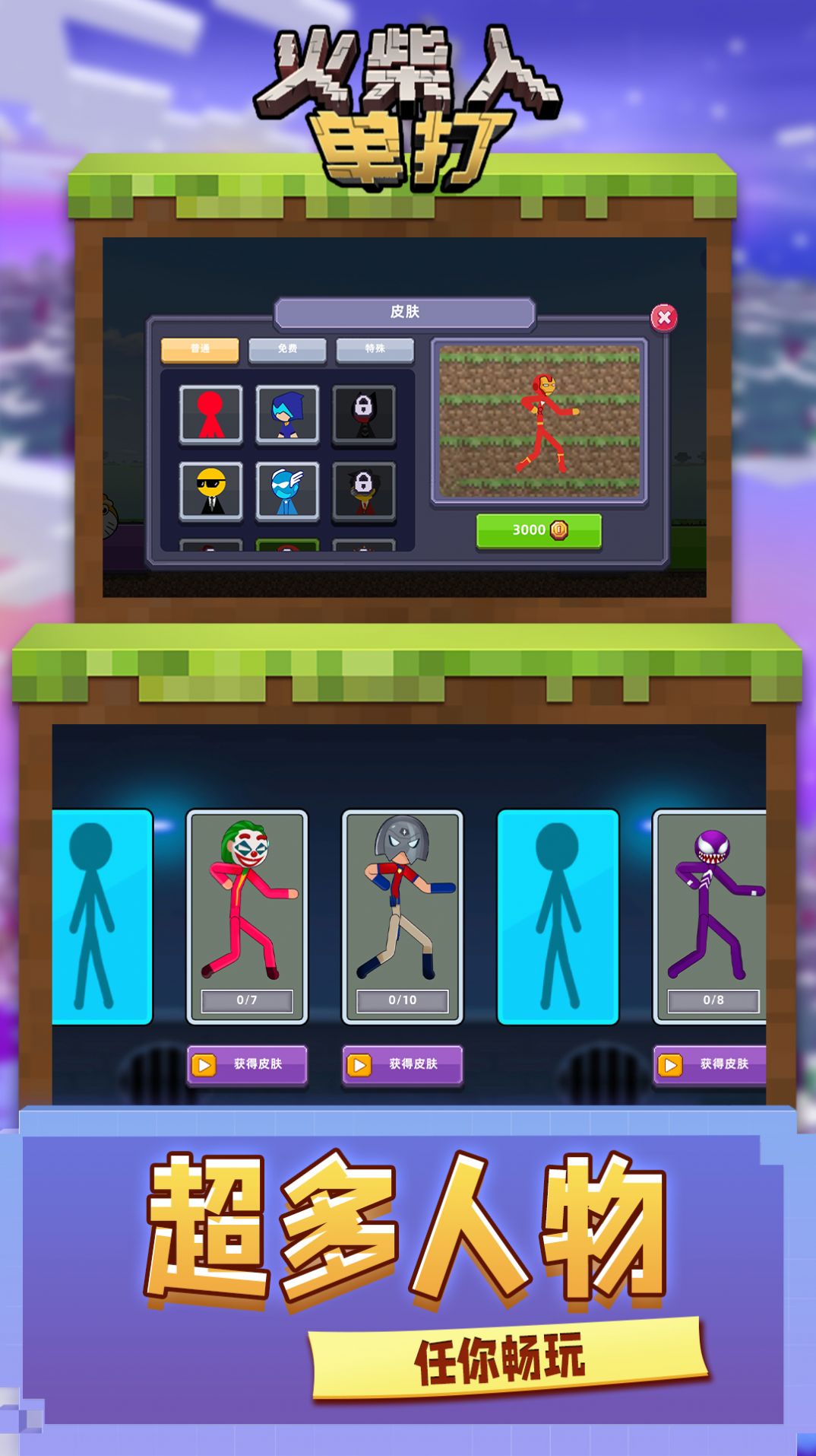 1、游戏中更多的滑稽皮肤,还有独特的方块火柴人形象;
