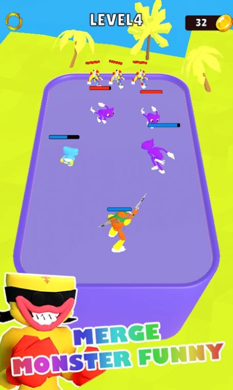 合并怪物战斗(Merge Monster Fight)这款游戏主要是休闲的类型,整个主题设计的画风都是卡通Q版模样的,非常的好玩和有趣,游戏的玩法主要是合成,玩家在游戏中只要把各种各样的怪物角色放置在场地内战斗就可以,相同模样的怪物可以合成并且进化,游戏的操作非常的简单,玩家可以很快的上手。