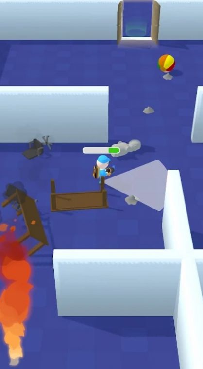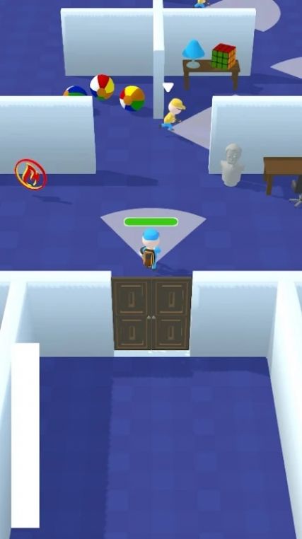 1、玩家要使用吸尘器吸收房间里的各种家具饰品作为子弹,然后躲避敌人的视线。