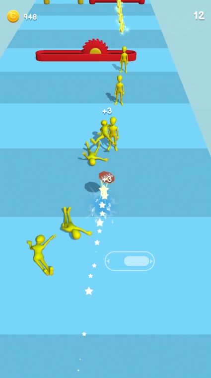 2、然后左右滑动屏幕控制足球的飞行方向,撞击更多球员进行得分吧;