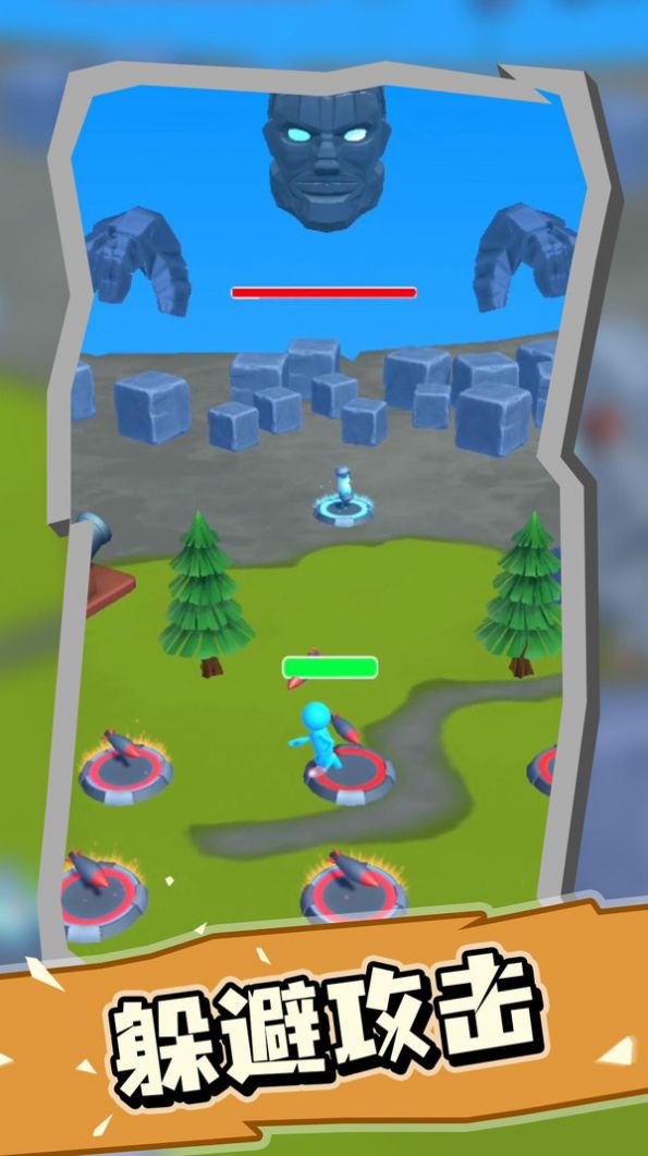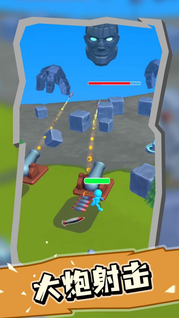1、灵活操控角色和炮塔,去对抗石雕神像,石雕神像会吐出石块来砸向你。