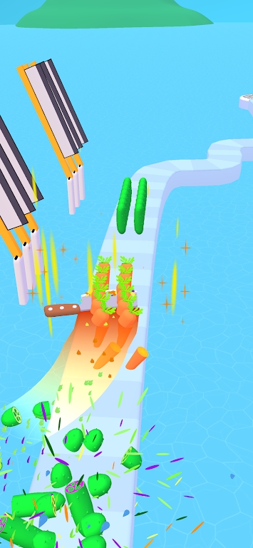 以菜刀为主角开始切水果和蔬菜,玩家要控制菜刀飞快的前进。