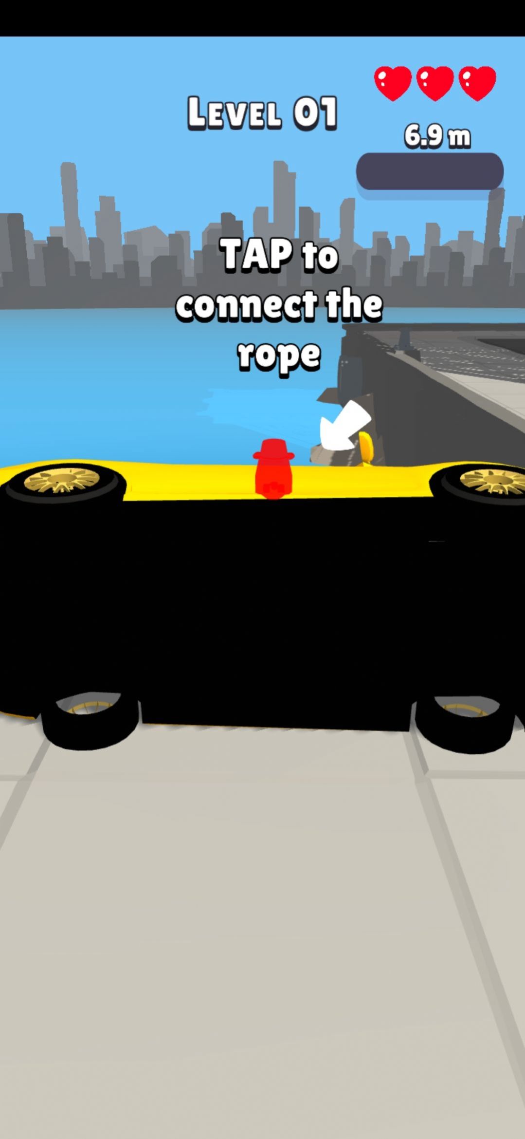 1、游戏开始前可以长按界面两侧的箭头观察物体上的着力点,找到正确的着力点并点击释放绳子。