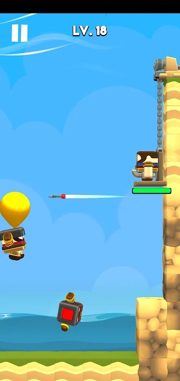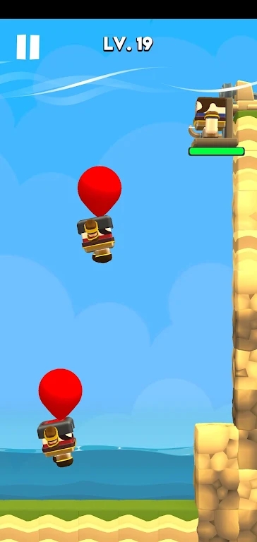 攻城的小兵想要利用气球飞进城堡,你必须在城墙上上下移动,调整射击角度。
