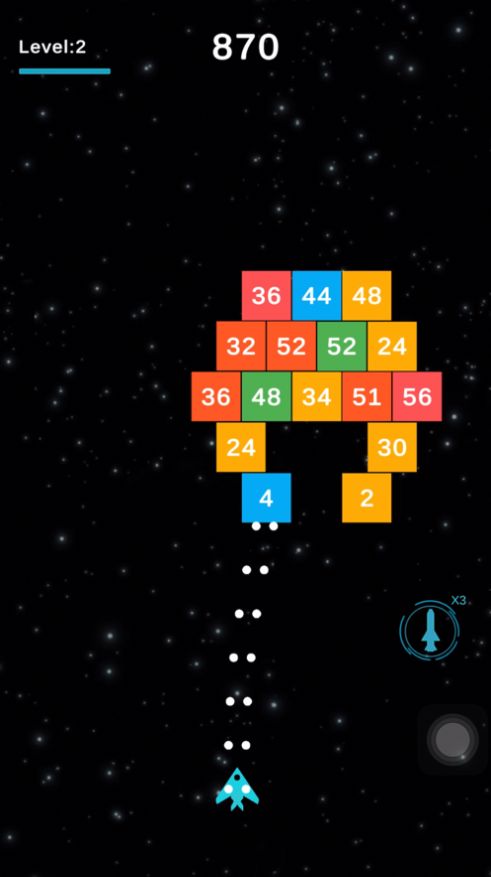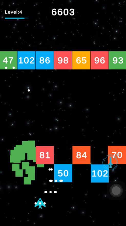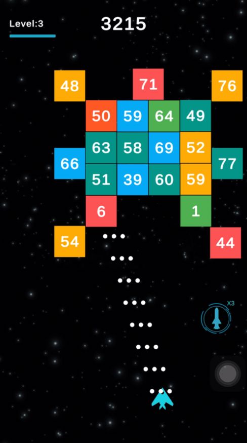 1、控制你的飞机射击砖块,砖块上的数字表示这个砖块需要被攻击多少次才能够被击碎。