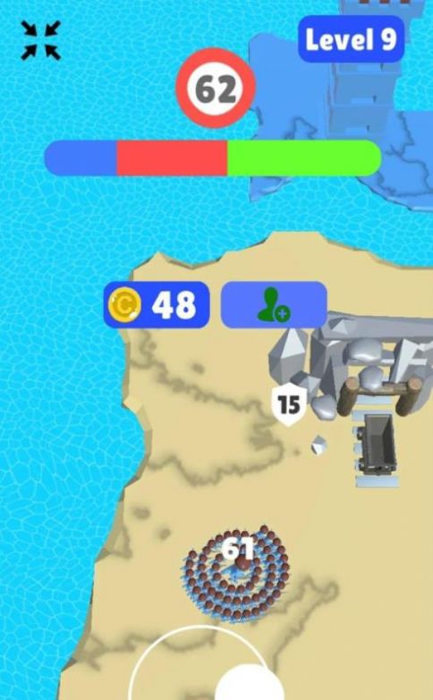 群体征服(Crowd Conquer)这款游戏主要是休闲趣味的类型,玩家在游戏中从一个人组成一个队伍,然后带领好你的队伍去占领更多的地盘,占领的越多,赢得胜利也就会更加的迅速,你需要去收集更多的兵力,只有不断的去扩大你的势力,就能跟各种各样的对手去比拼,从而也更加的有挑战性。