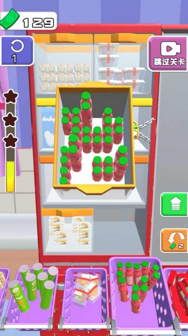 冰箱陈列师塞满冰箱这款游戏主要是休闲放置的类型,玩家在游戏中需要把放置在货架上面的物品、食物、饮料等等东西全部放进冰箱,并且按照要求整理好,只要看起来不乱且东西都放进去了,那就可以完美的通过检查,并且完成任务,游戏的过程非常的解压,玩法还是有些烧脑的,但是乐趣多呀!