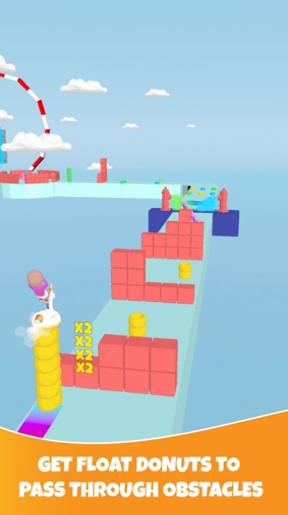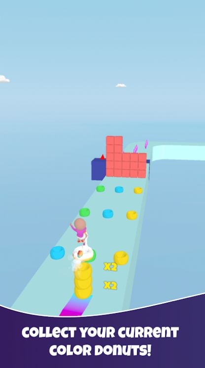 甜甜圈颜色(Donut Color)这款游戏主要是休闲趣味的类型,玩家在游戏中主要就去收集各种颜色的甜甜圈,只要收集的甜甜圈越多,玩家所处的高度也就是越高的,收集的路上注意前方的障碍物,通过障碍物之后甜甜圈也是会消失一定的数量,所有一定要学会避免,收集的甜甜圈越高,分数也是越高的。