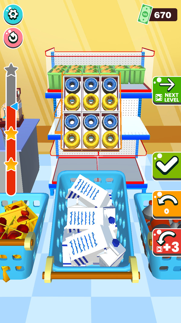 超市陈列师是一款很有意思的休闲收纳游戏,这款游戏的玩法十分的简单,玩家可以很轻松的上手体验,玩家需要将关卡中的物品进行分类,然后合理的进行摆放,这样就能够顺利的过关获取奖励,游戏中每一关的难度都在不断地提升,玩家可以通过不断地闯关来掌握一些技巧,游戏中关卡是有时间限制的,玩家耗费的时间越少获取的奖励就越多,游戏的玩法丰富,给玩家带来了不错的体验。