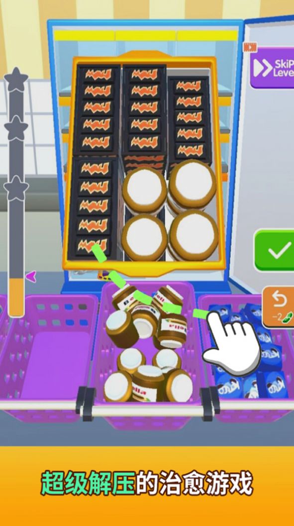 3、指尖自由的移动,将这些货物顺利的分类处理干净,释放自己的压力等你体验。