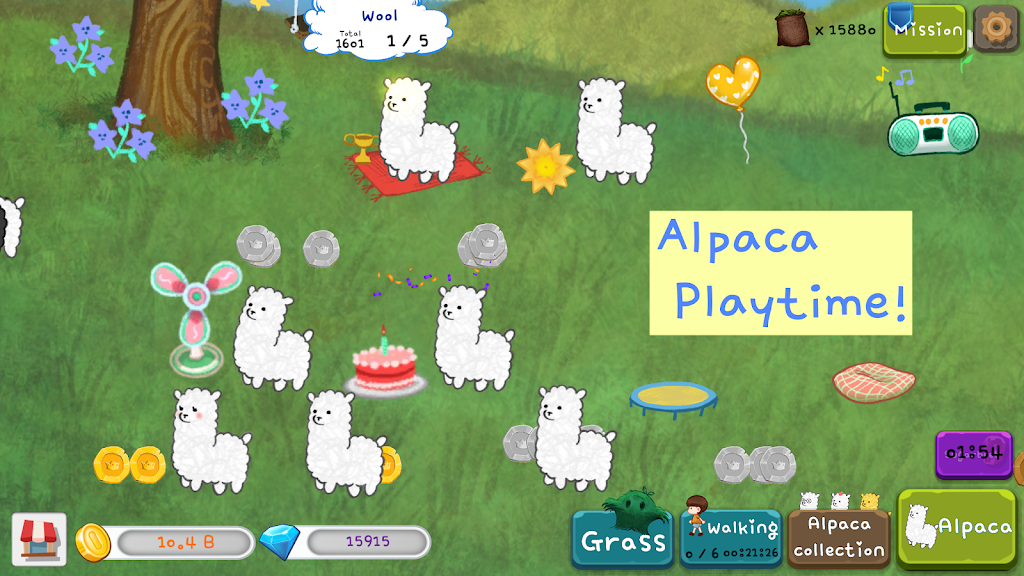 治愈的游戏画风,轻松休闲的玩法,经营一家羊驼牧场玩家可以自由的跟羊驼互动,总体趣味休闲