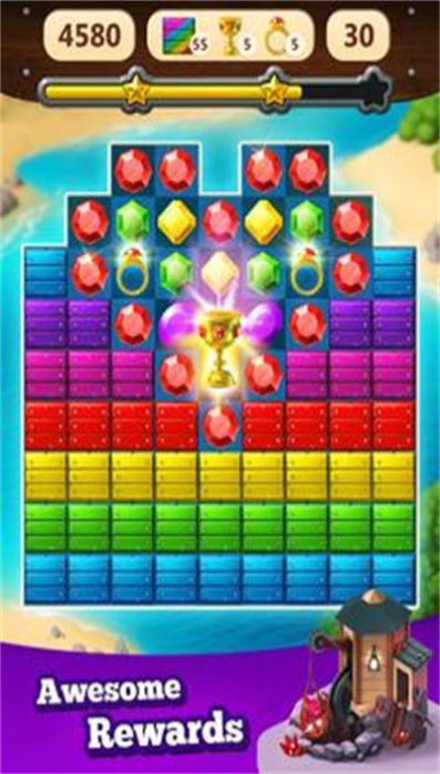3、精彩的三消体验,小清新的游戏画面,超多特色的珠宝元素。