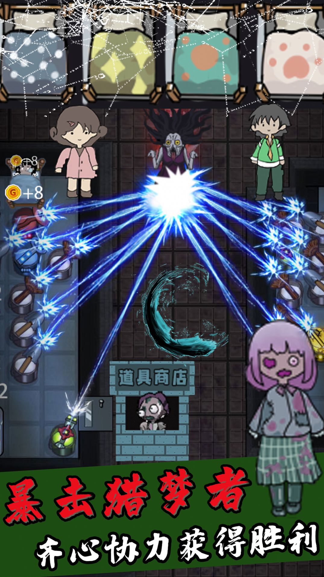 这款游戏不是你一个人,你要和你的室友一起来挑战,猛鬼会随机选择宿舍进行攻击的,快选择你强大的塔防来抵御猛鬼吧!