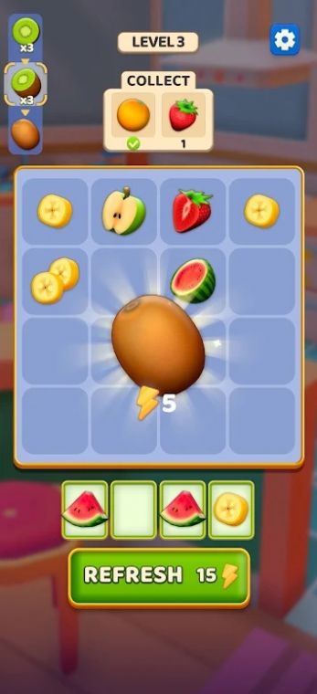 2、多样的消除任务,可以随意挑战,三个水果合并,轻松消除;