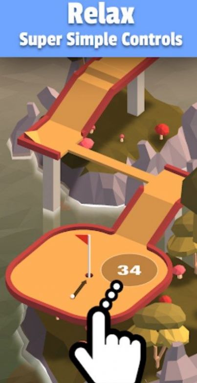 2、游戏玩法简单易懂,让高尔夫在空中穿越更多的障碍,最终可以让球体滚入到洞中;