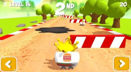 2.游戏操作特别简单,你做需要通过手指滑动的方式就可以操控你的汉堡王少年进行刺激的跑酷挑战了。