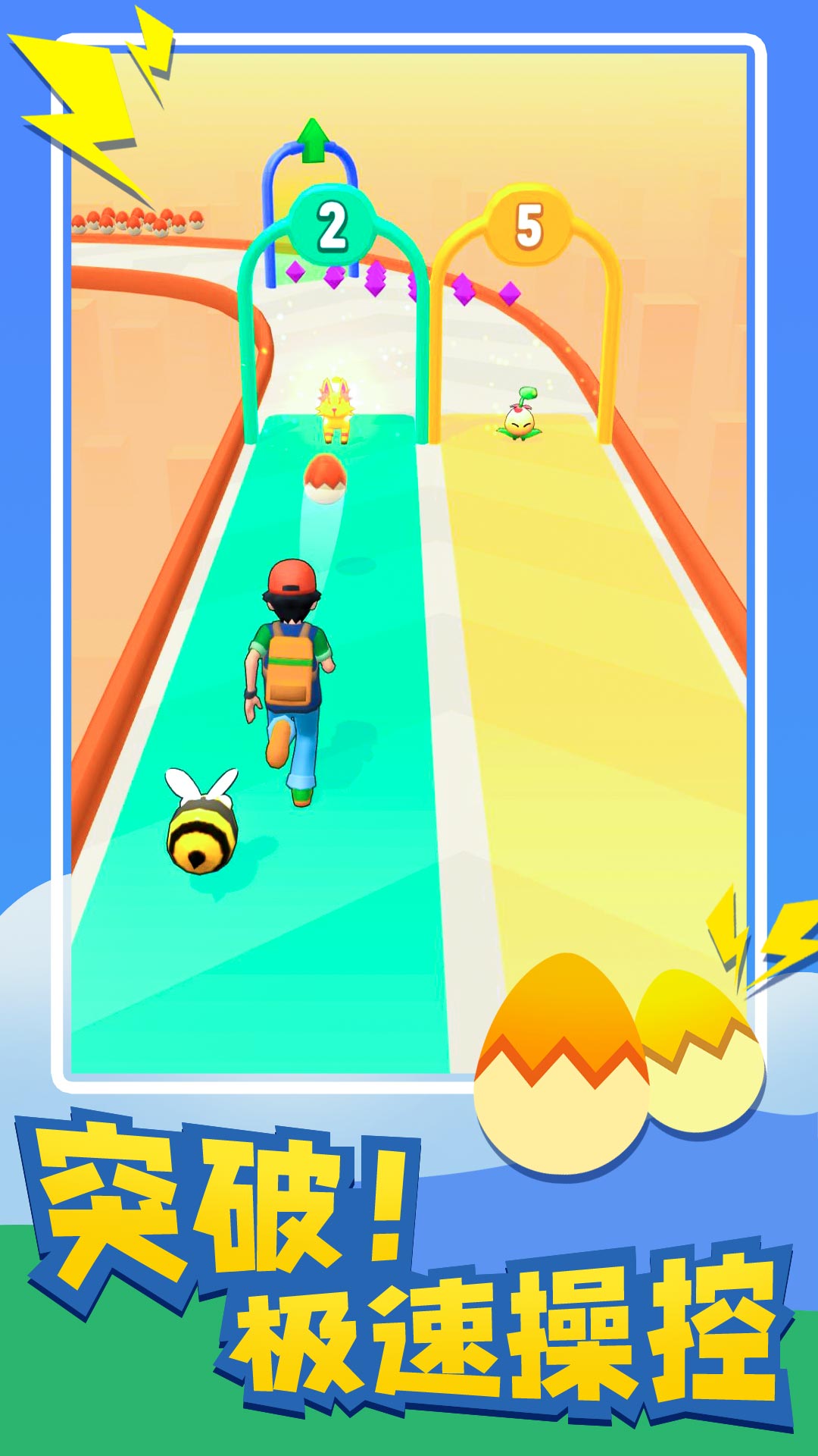 1、采用了动作跑酷玩法,玩家在关卡内一边奔跑,一边收集精灵球与钻石,一边还要躲避危险与陷阱。