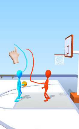 2、游戏是1vs1双人竞技对决,玩家在投篮是需要注意随手的动作。