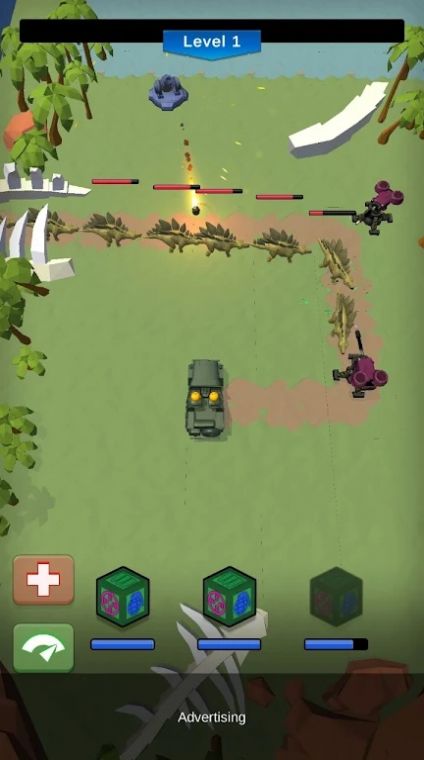 1、可以自由感受熟悉的塔防玩法,准确投掷炮塔,对抗恐龙;