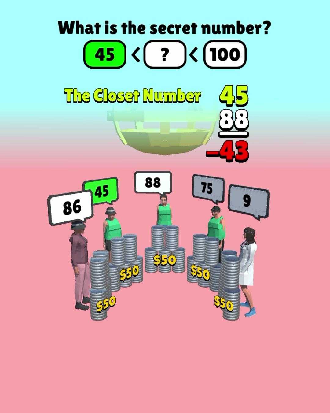 秘密数字(Secret Number)是一款休闲类益智游戏,有趣的猜数字玩法给玩家带来了十分有趣的体验,玩家需要根据游戏给出的范围来选择合适的数字,猜对后就可以获取胜利,领取丰厚的奖励,轻松简单的操作模式让玩家能够很快速的上手体验,游戏带来了超多的关卡,玩家可以通过完成这些任务挑战解锁更多的游戏内容。