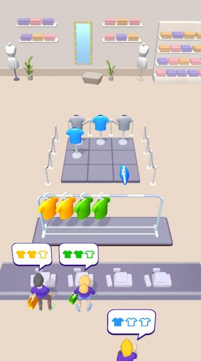 1、快来这里参与有趣的配对消除,将相同颜色的服装按照客人的要求消除;