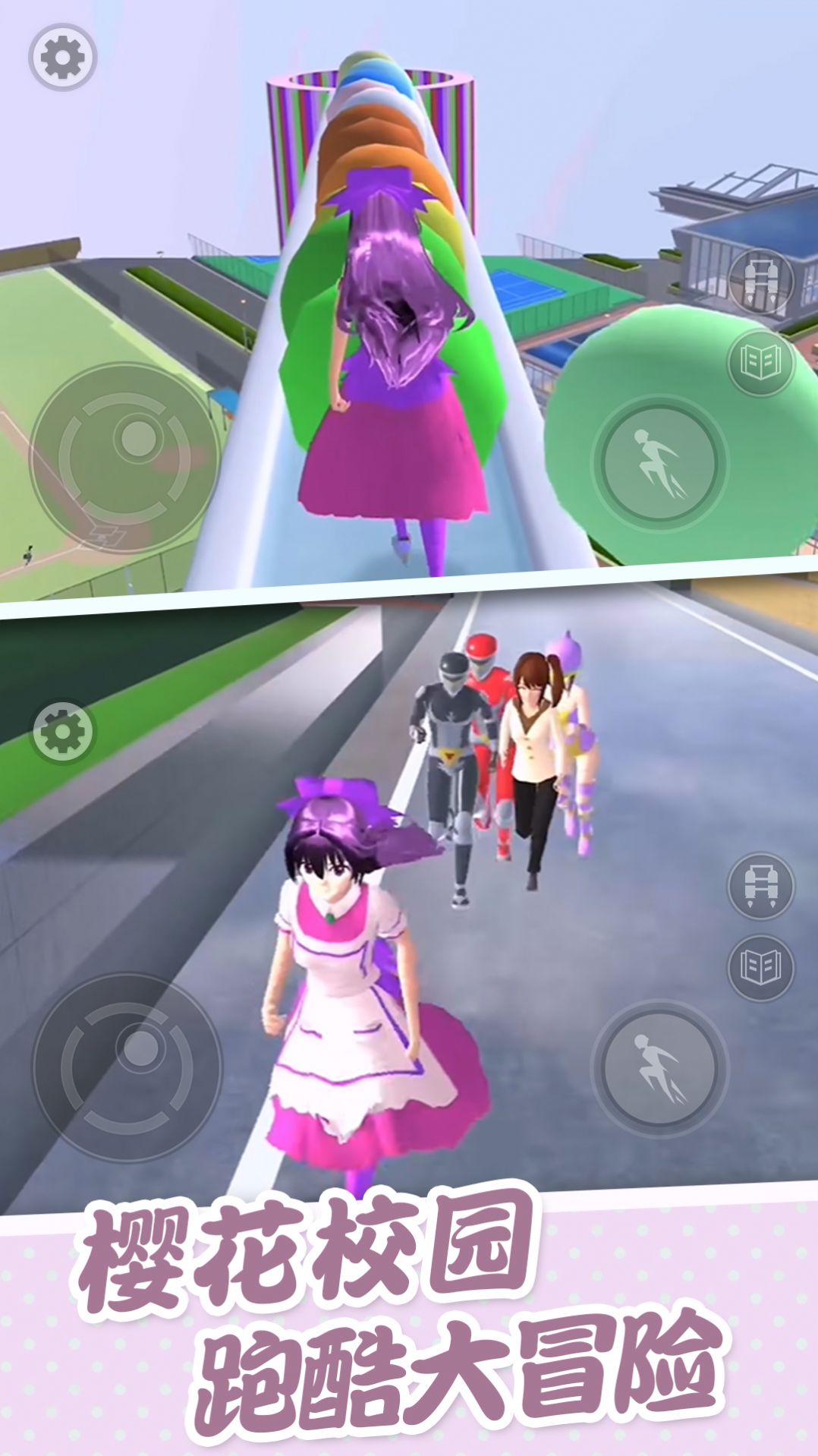 1、自由的樱花校园中的探索的玩法,在过程中玩家可以进行跑酷闯关和装扮的玩法。