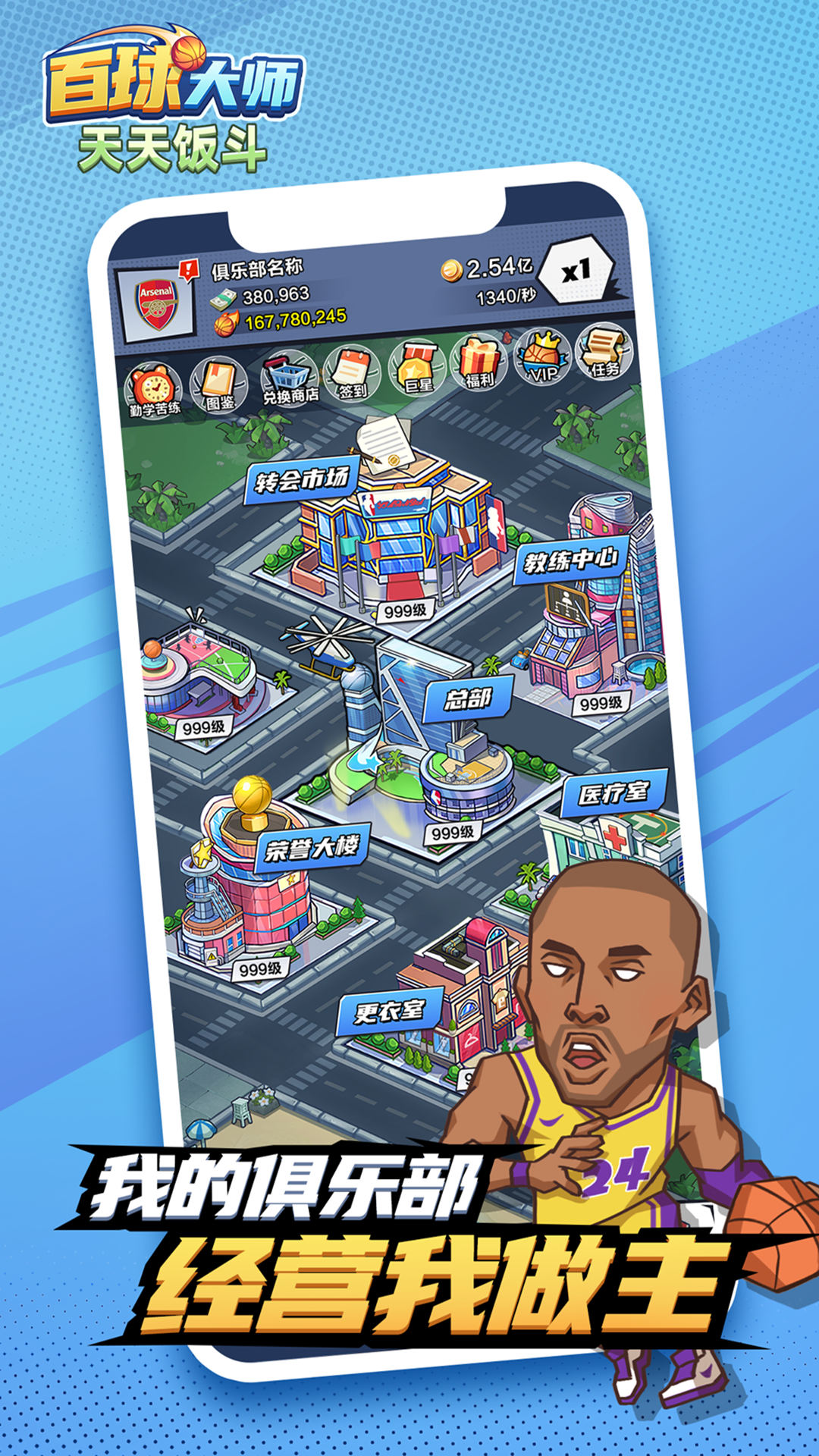 1、欢乐趣味的放置经营玩法,组建起球队来征战NBA,赢得奖励扩大俱乐部规模;