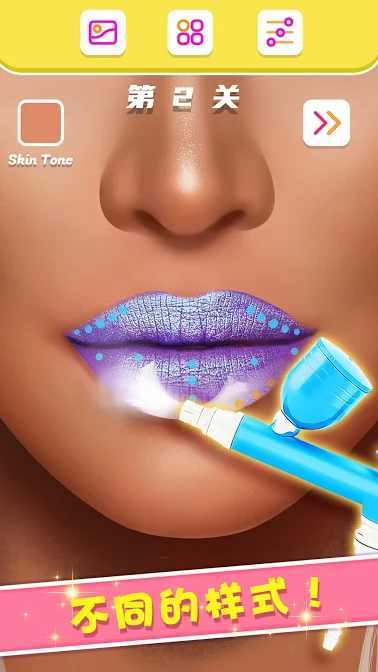 口红大挑战是款休闲益智类游戏,在游戏当中玩家将成为一名拥有众多口红的化妆师,在这里我们将为各种人来进行涂口红!游戏当汇总有着众多的关卡,每个关卡都有着不同的人前往我们的小店当中,我们要根据每个人不同的嘴形来进行选择口红!