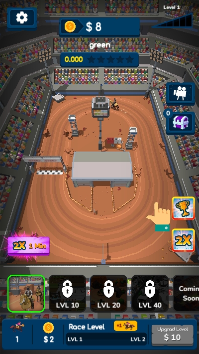 赛马场模拟器游戏是一款模拟经营的放置类游戏,玩法非常轻松愉快,很合适休闲时间来玩,游戏中玩家需要不断消耗金币来扩张的马匹和骑手,队伍越大收益就越高,玩家也可以直接放置即可,只需间隔一段时间来清理金币即可。快来试试吧!