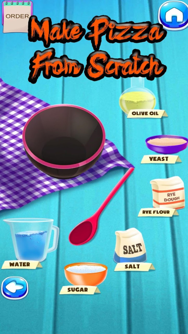 首先,你必须为美味的披萨小吃烹饪疯狂厨房购买所有必需的配料;