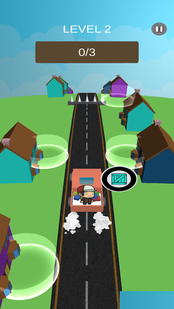 一路上会有各种各样的房子。 观察快递的颜色,然后将它们扔进相同颜色的房间!