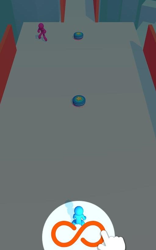 1、点击开始后,随意滑动屏幕控制圆盘侠移动,获得圆盘的同时根据箭头调整角度;