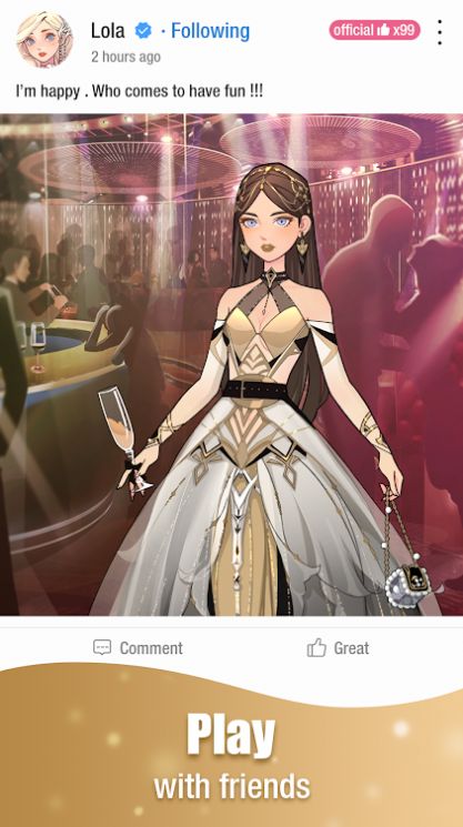 2、与朋友一起玩,与其他玩家成为朋友,加入热爱游戏的社区,分享你的创意造型。