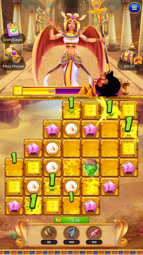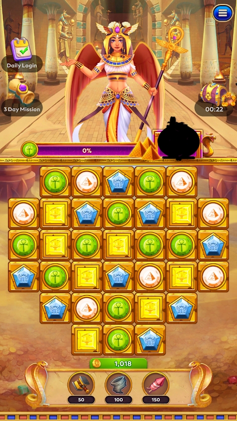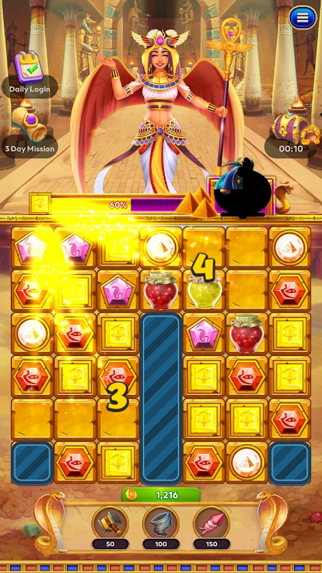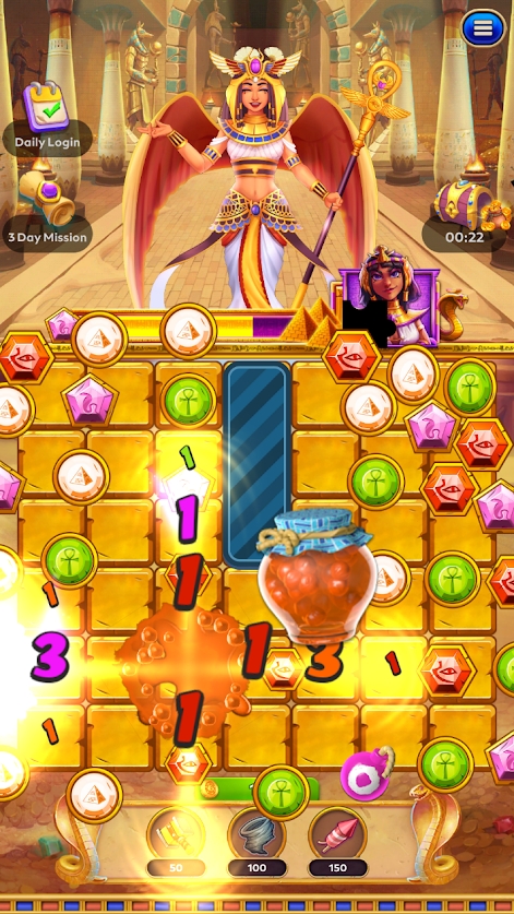 1、只需合并3个或更多相同的珠宝来炸开它们,达到最高分即可揭开上帝之谜并找出埃及艳后的宝藏。
