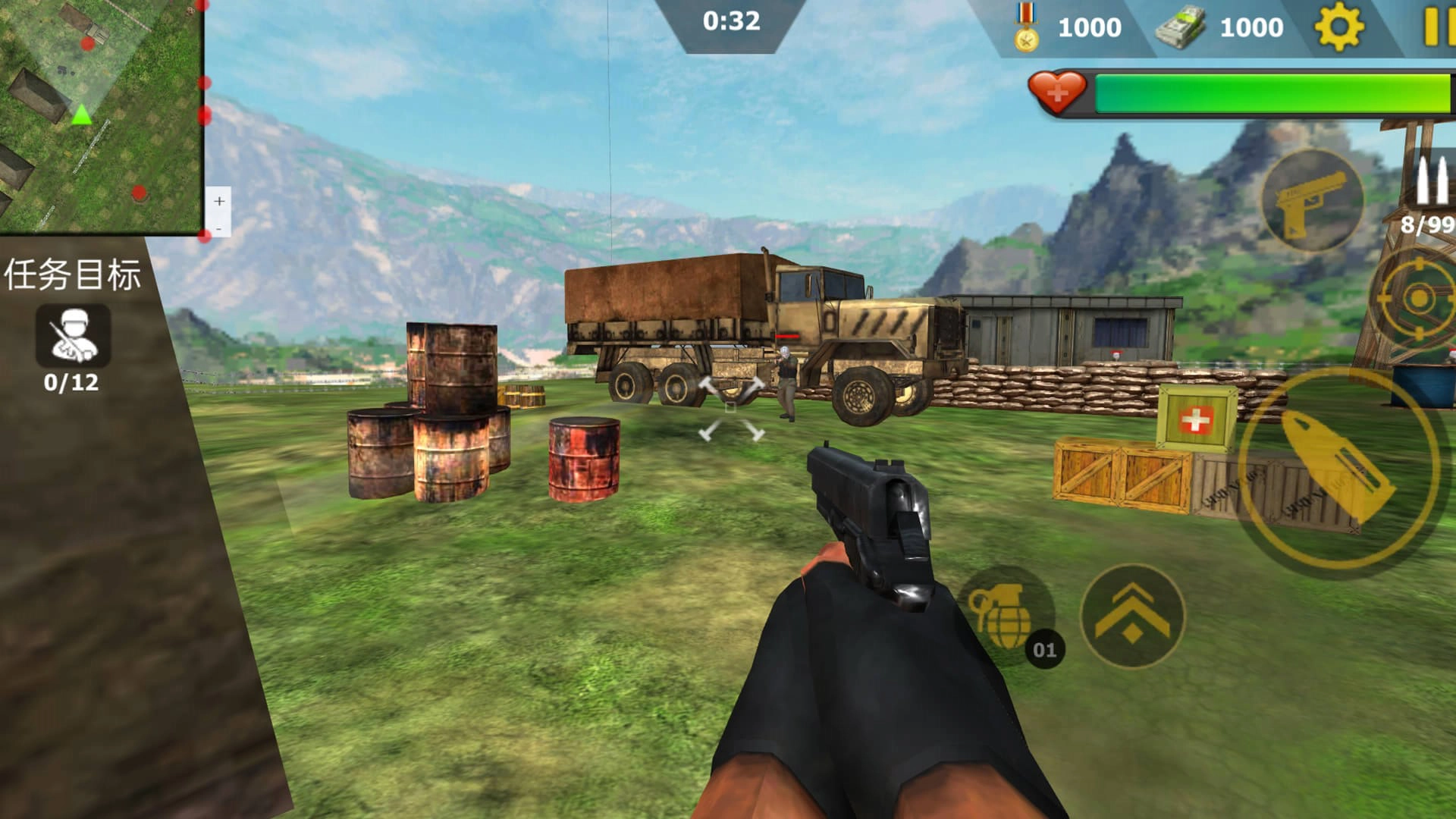 这是一款军事题材第一人称射击游戏。玩家在游戏中,作为一个小兵,会接取不同的任务。