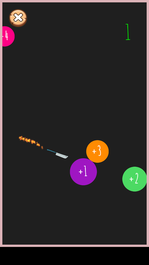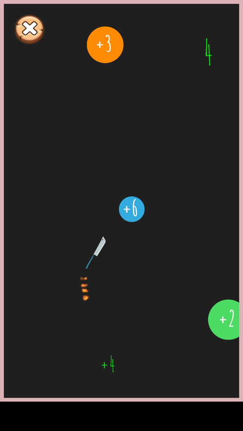 2、刀不断旋转,点击屏幕以投掷并切球,不要让刀掉下,并使刀始终保持在空中;