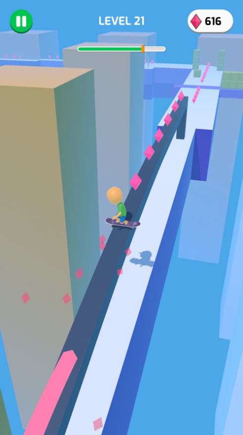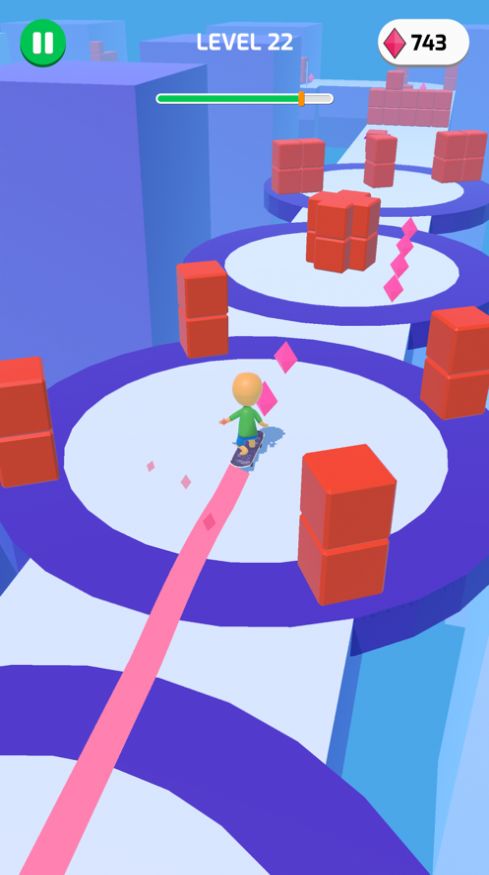 滑板冲浪者3D趣味滑板闯关的一个小游戏,配合滑板的动力不断进行前进和闯关,结合了些许跑酷玩法的特点,不同关卡对于障碍设置以及赛道的挑战难度完全不同,玩家必须凭借更多的细节技巧,完成对其中的操作以及闯关冒险。跟随钻石的正确路线引导即可哦。