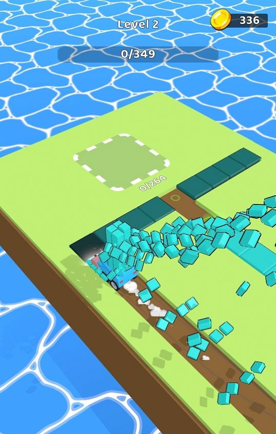 1、卡通的画风世界,自由驾驶卡车,去收集更多的资源材料;