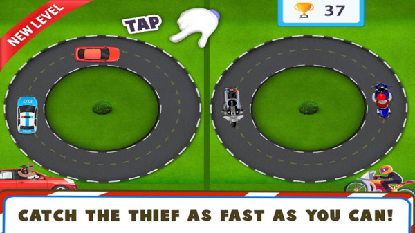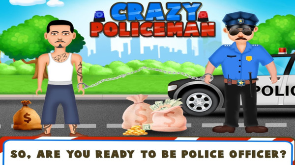 一款扮演警察随时去逮捕犯人的儿童模拟游戏,横版动画游戏场景;