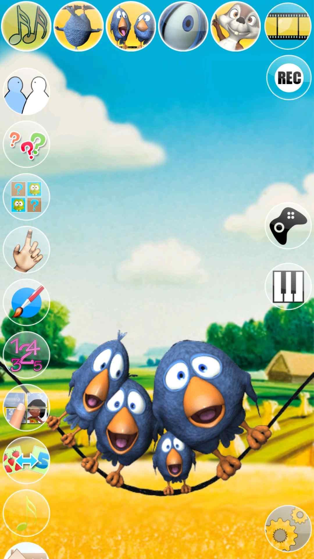 1、小鸟拉里可互动操作选项多样,说话、弹琴、触击、喂食等等。