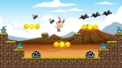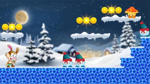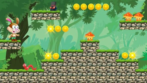 1、您可以通过收集硬币和武器(胡萝卜)来帮助 Super Doe 穿越非凡的冒险丛林世界。