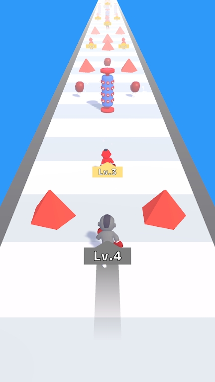 2、快速拾取道路上的所有金币,使用各种道具提升速度,找到更多的路线快速到达终点。