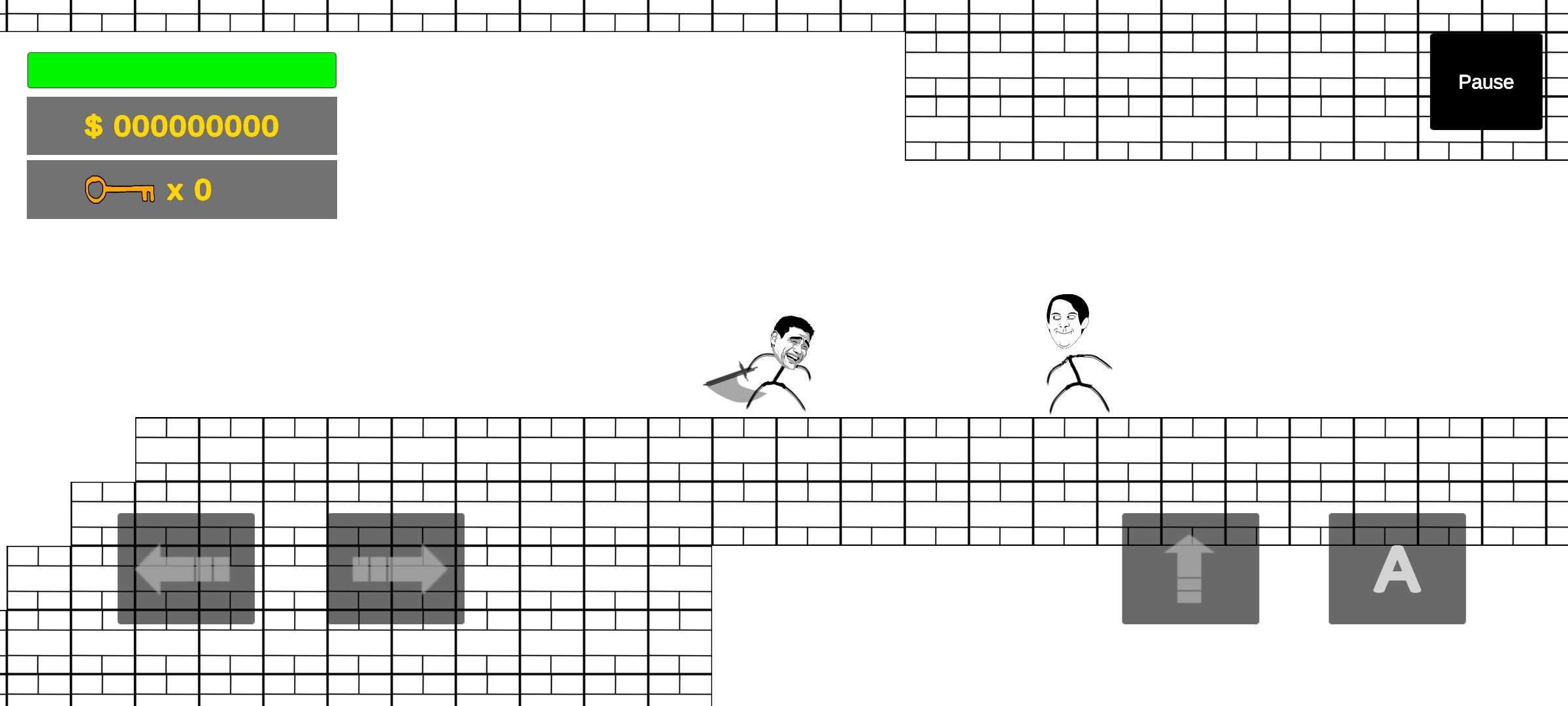 1、使用虚拟按键来控制角色,操作角色移动、跳跃以及攻击。