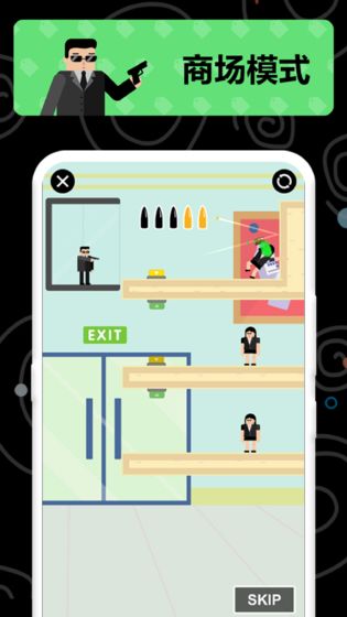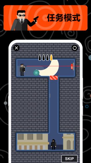 让子弹飞特工拯救战是一款益智射击闯关的小游戏,每一次的闯关都会以主线任务的目标展开,消灭所有关卡中的敌人以及不同障碍,完成自己的拯救挑战,这个让子弹飞特工拯救战游戏的操作非常轻松,但是需要玩家控制射击的角度,通过子弹的反弹以及精准的预判,消灭多个敌人完成闯关的挑战。